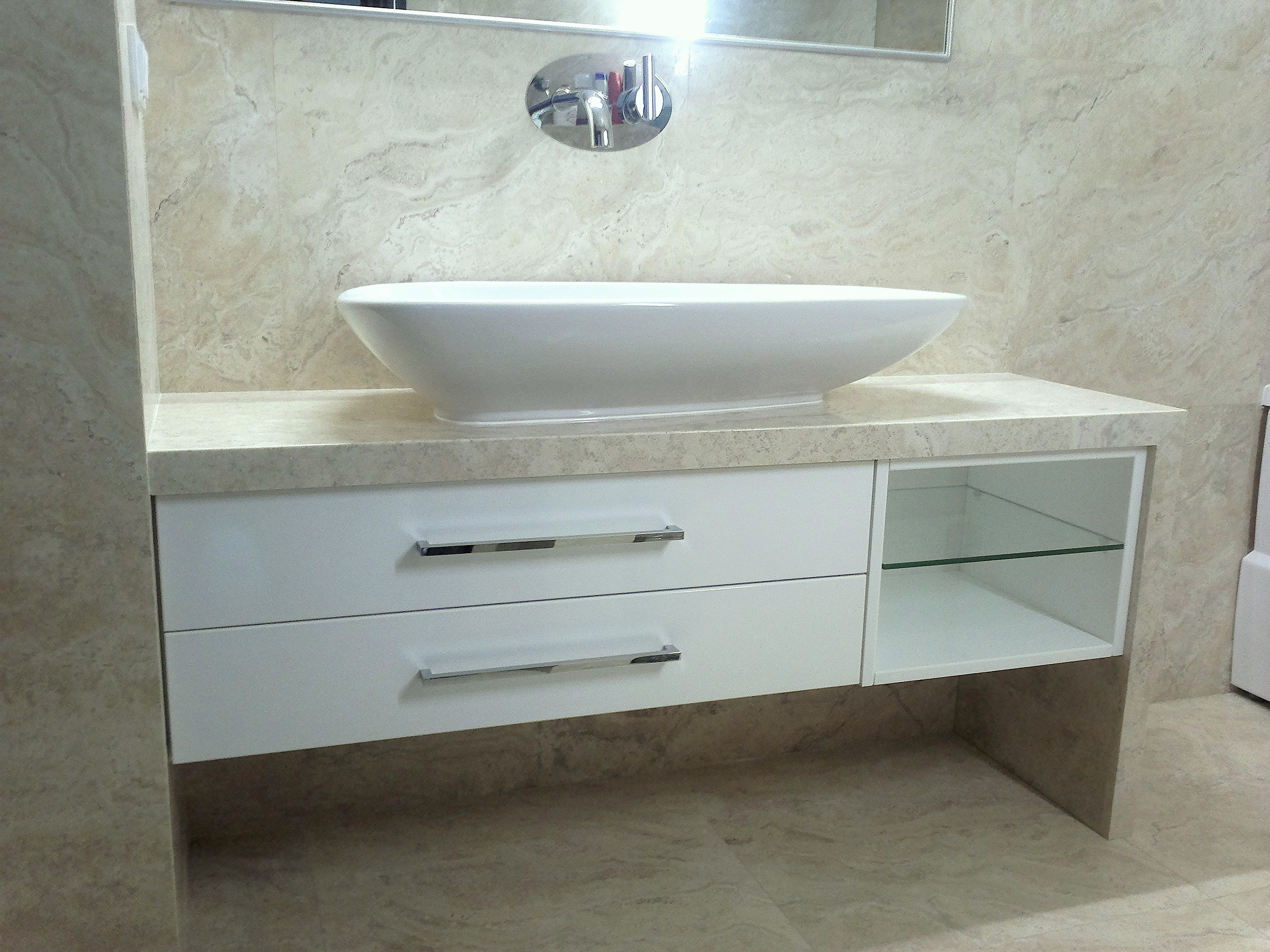 Органічні плавні форми, натуральні матеріали, функціональне та зручне наповнення меблів… – у цьому проекті є все!) Замовник попросив спроектувати компактну, не високу тумбу з парою висувних ящиків та відкритим блоком зі скляною полицею. Ми виготовили тумбу у двох модулях і встановили її протягом півгодини. Нам і нашому клієнту дуже сподобався результат та стильний зовнішній вигляд меблів!)