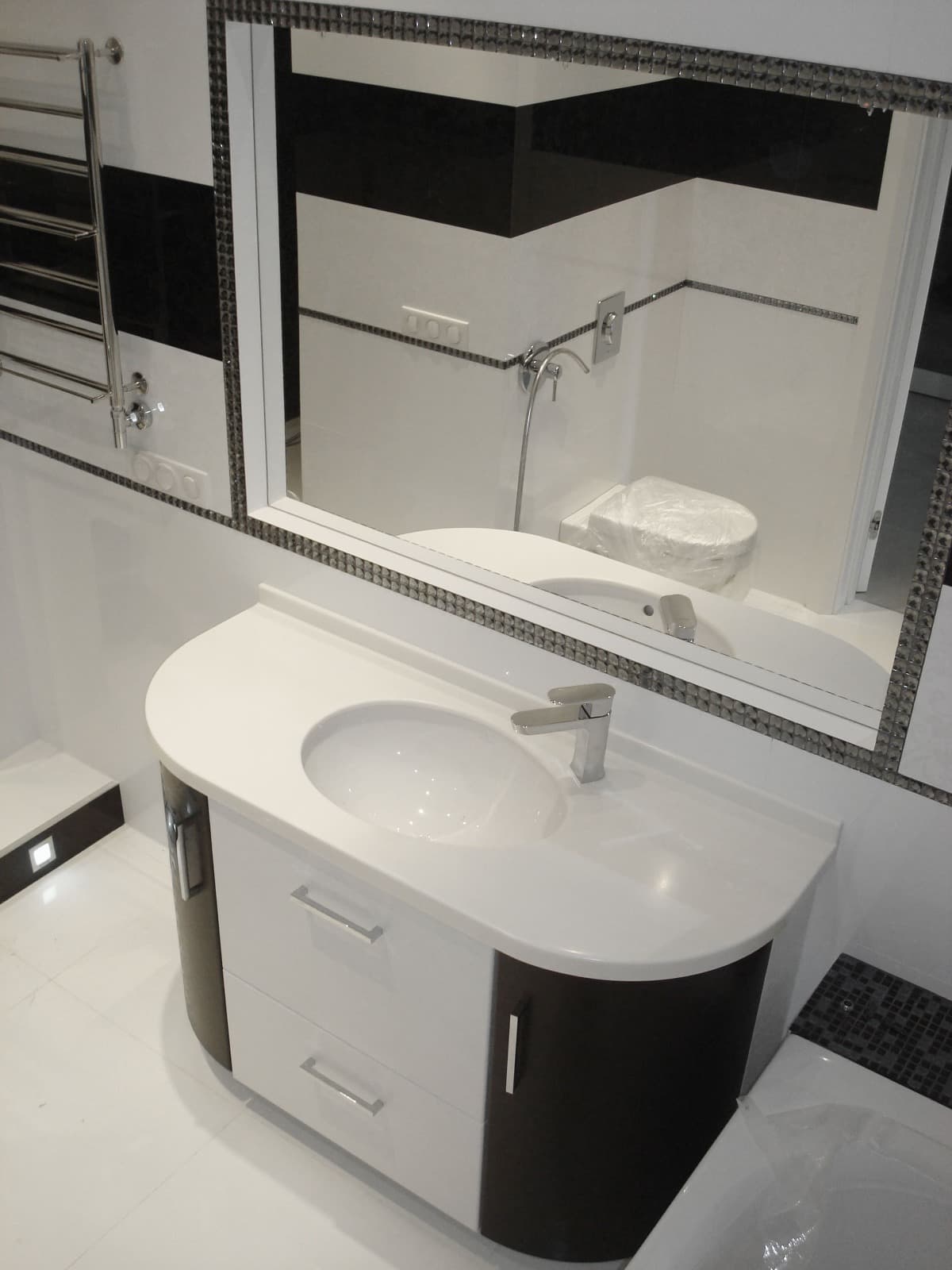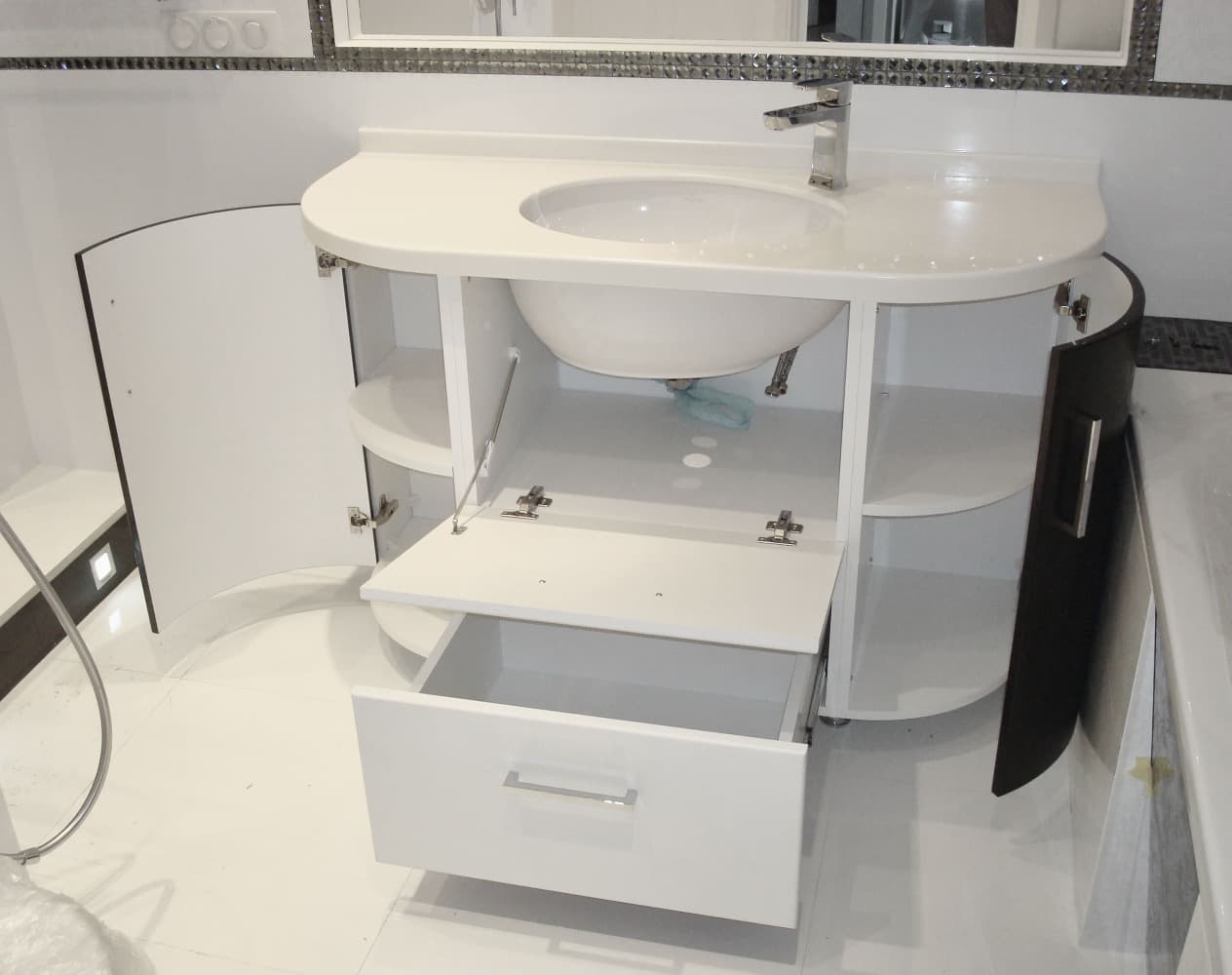 Радиусная тумба под умывальник и зеркало